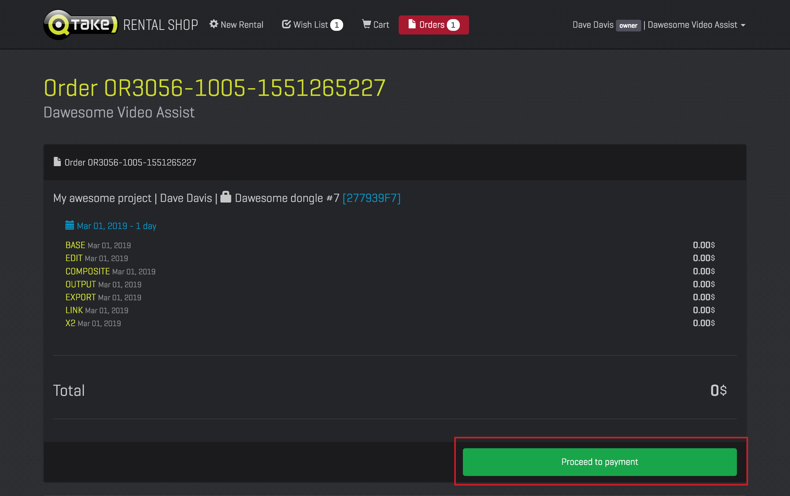 When you are ready to pay for your QTAKE Pro, QTAKE 1.x, QTAKE Server, or credits order, click Proceed to payment button, which will take you to the checkout interface of our trusted payment processor, the FastSpring company. After completing the payment process, your order will be fulfilled automatically.